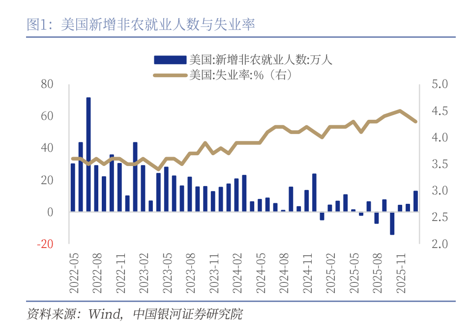 银河证券指出,1月就业增长仍高度集中于医疗等少数行业,结构性特征未见改善,景气持续性有待观察。华泰证券维持美联储6月前暂停降息的判断,称就业市场下行风险虽有所缓解,但数据改善的可持续性仍需进一步验证。