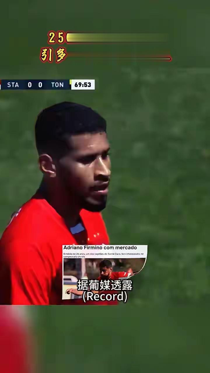 2026年1月31日,据葡萄牙体育媒体《纪录报》消息,葡超圣克拉拉俱乐部队长、巴西中场阿德里亚诺·菲尔米诺已收到中超球队的正式报价。记者多方了解,河南足球俱乐部是这笔转会的潜在下家,并且在竞争中处于领跑位置。